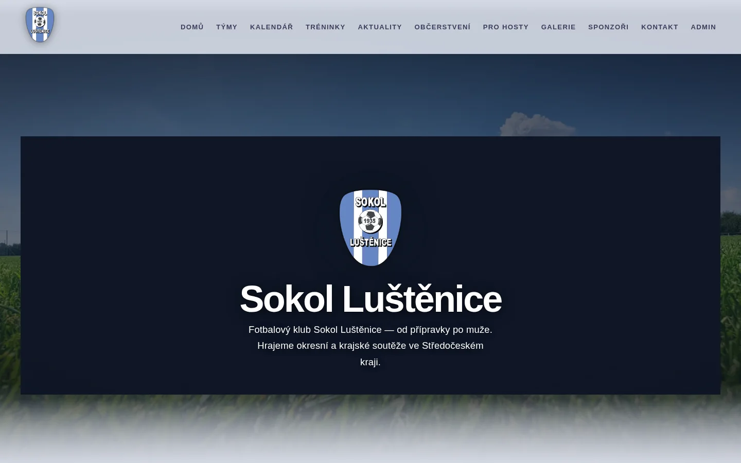 Full club website with automated match data pulled directly from the Czech Football Association. League tables, fixture calendars, squad profiles, training schedules, and match-day results — all updated automatically.